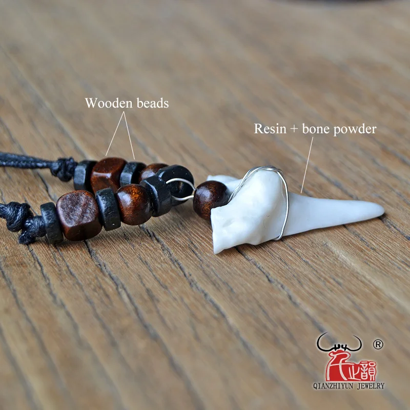 Best 1PC Hawaii Surfer Jewelry Handmade Imitation shark teeth Pendant New Zealand Maori Tribal bone Chok