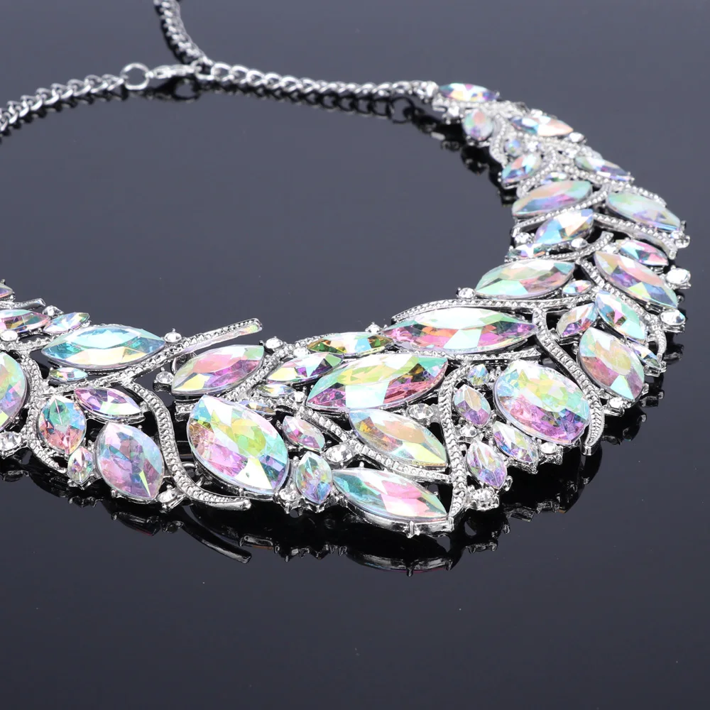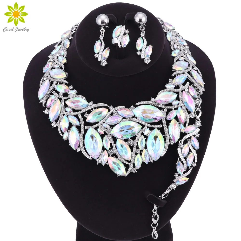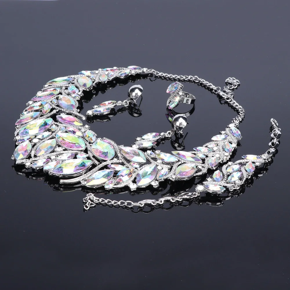 Promo Fashion Indian Crystal Necklace Earrings Bracelet Ring Bridal Jewelry Sets For Brides Party Wedding