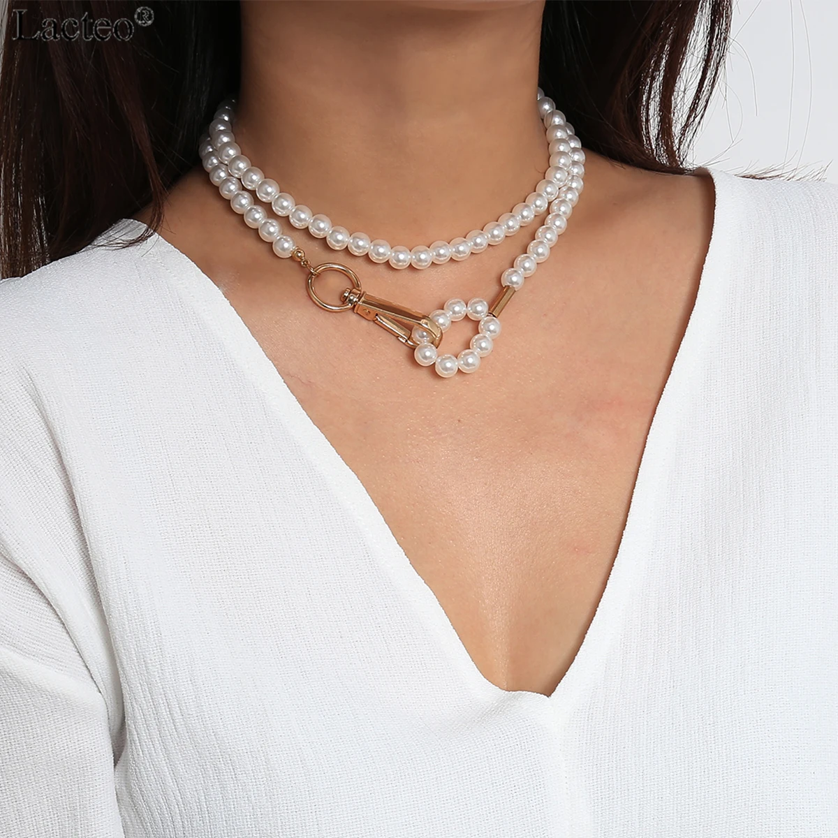Best Lacteo Bohemian Imitation Pearl Clavicle Chain Choker Necklace for Women Simple Multi Layered Charm