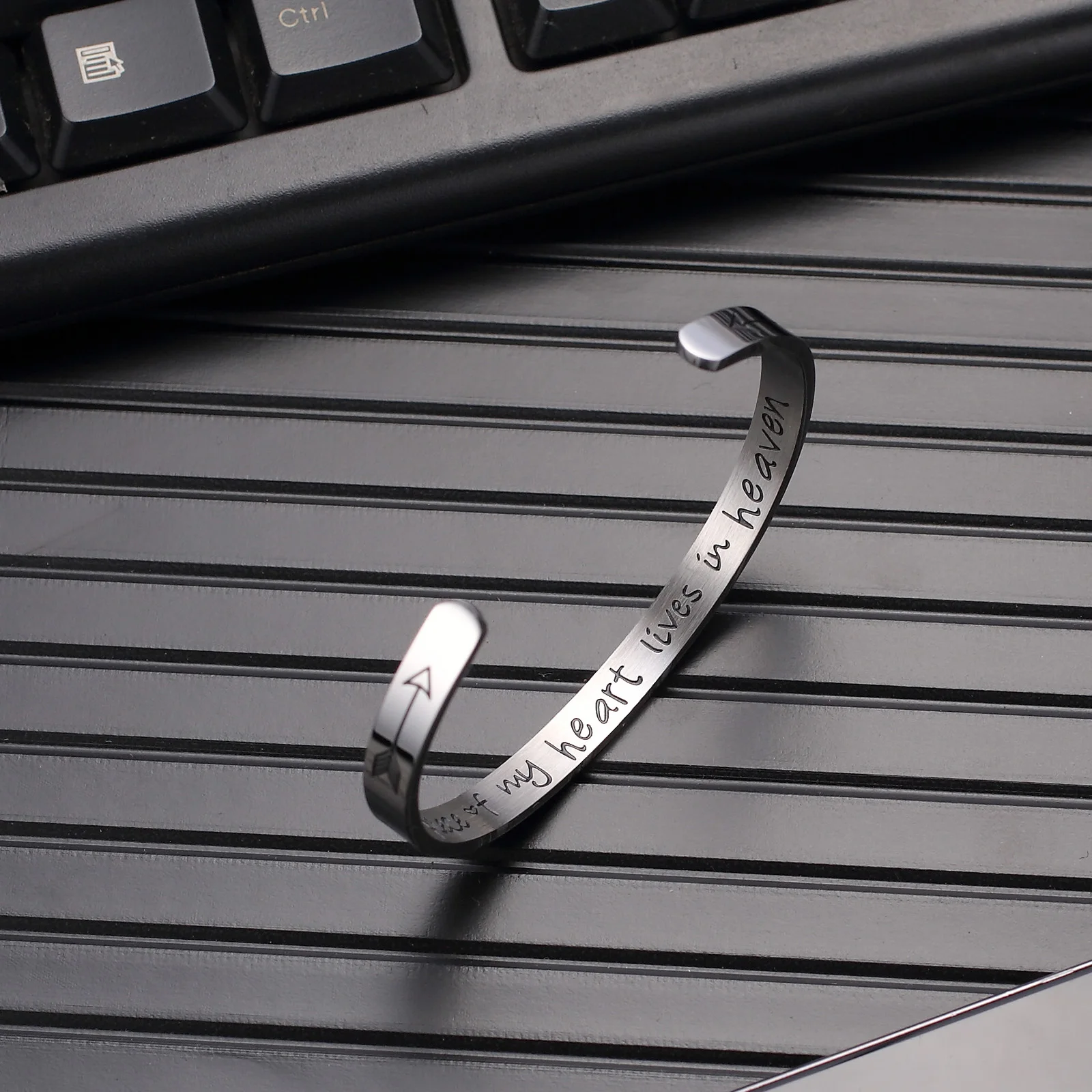 Best Memorial Jewelry A Piece of My Heart Lives in Heaven Bracelet Stainless Steel Engraved Cuff Bracele