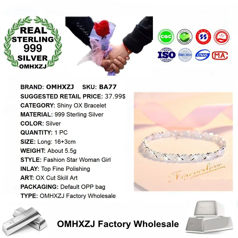 Best OMHXZJ Wholesale European Fashion Woman Girl Party Wedding Gift Shiny Silver OX 999 Sterling Silver