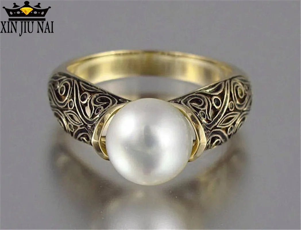 Best Pearl Ring Silver Retro golden Costume Jewelry The King Of The Ring Gives A Gift To A Woman Stainle