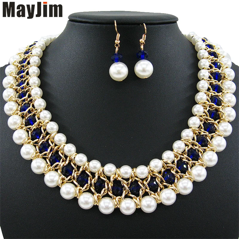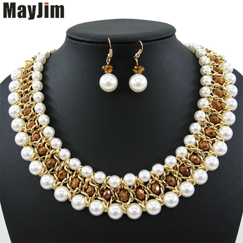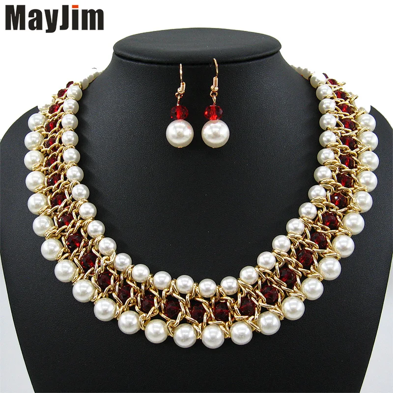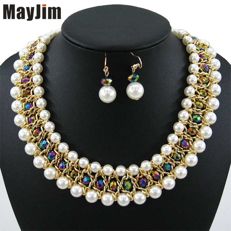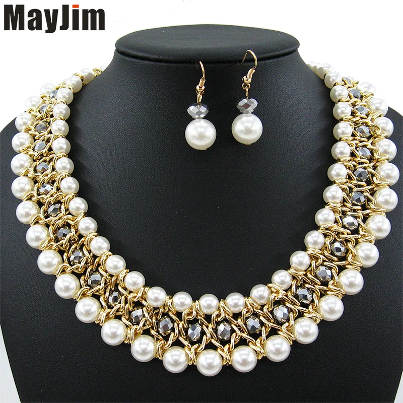 Best Statement 2018 New Fashion indian bridal big Simulated pearl Jewelry Sets bead Gold Chain Necklace
