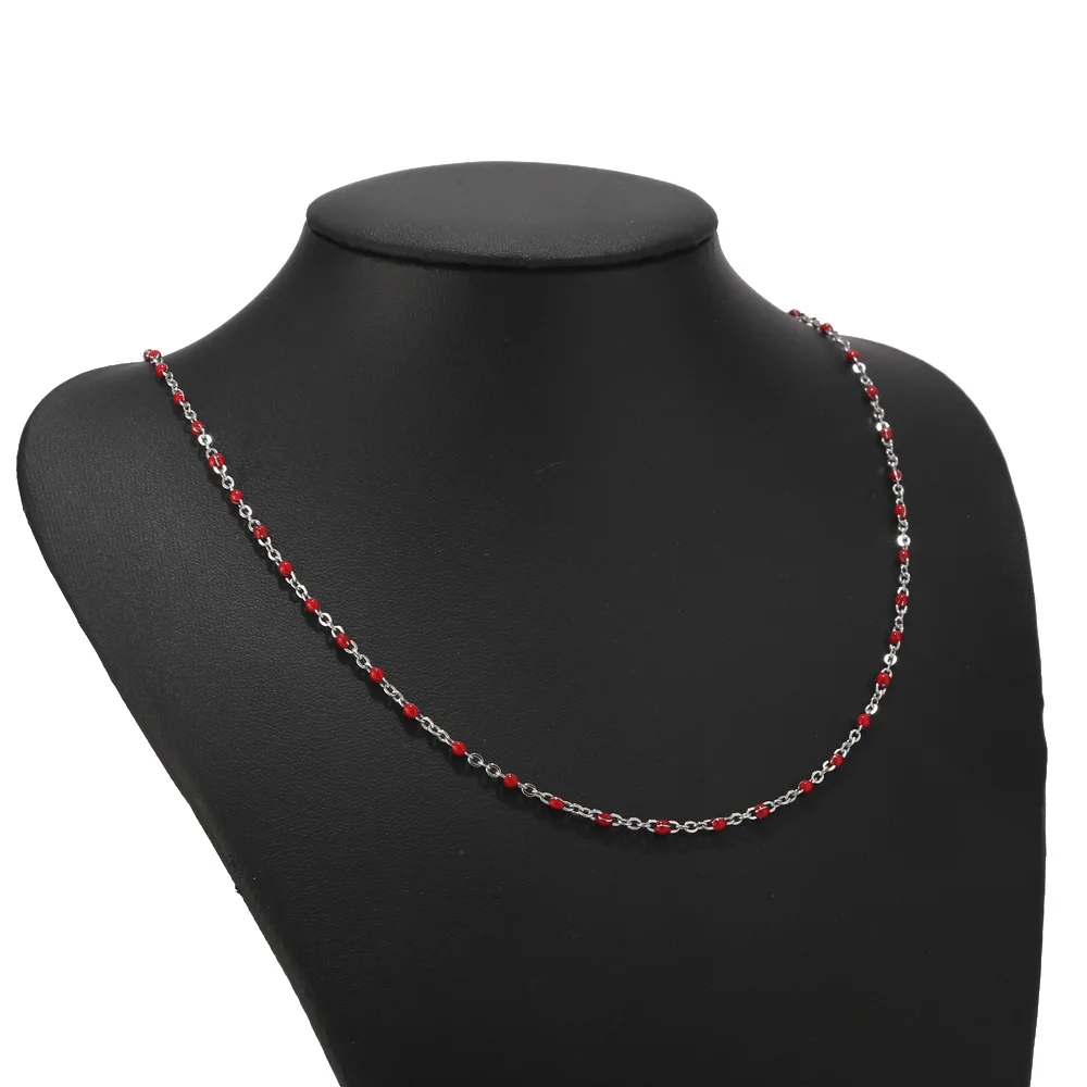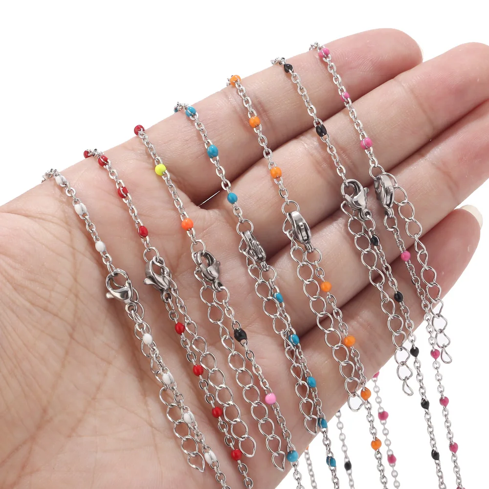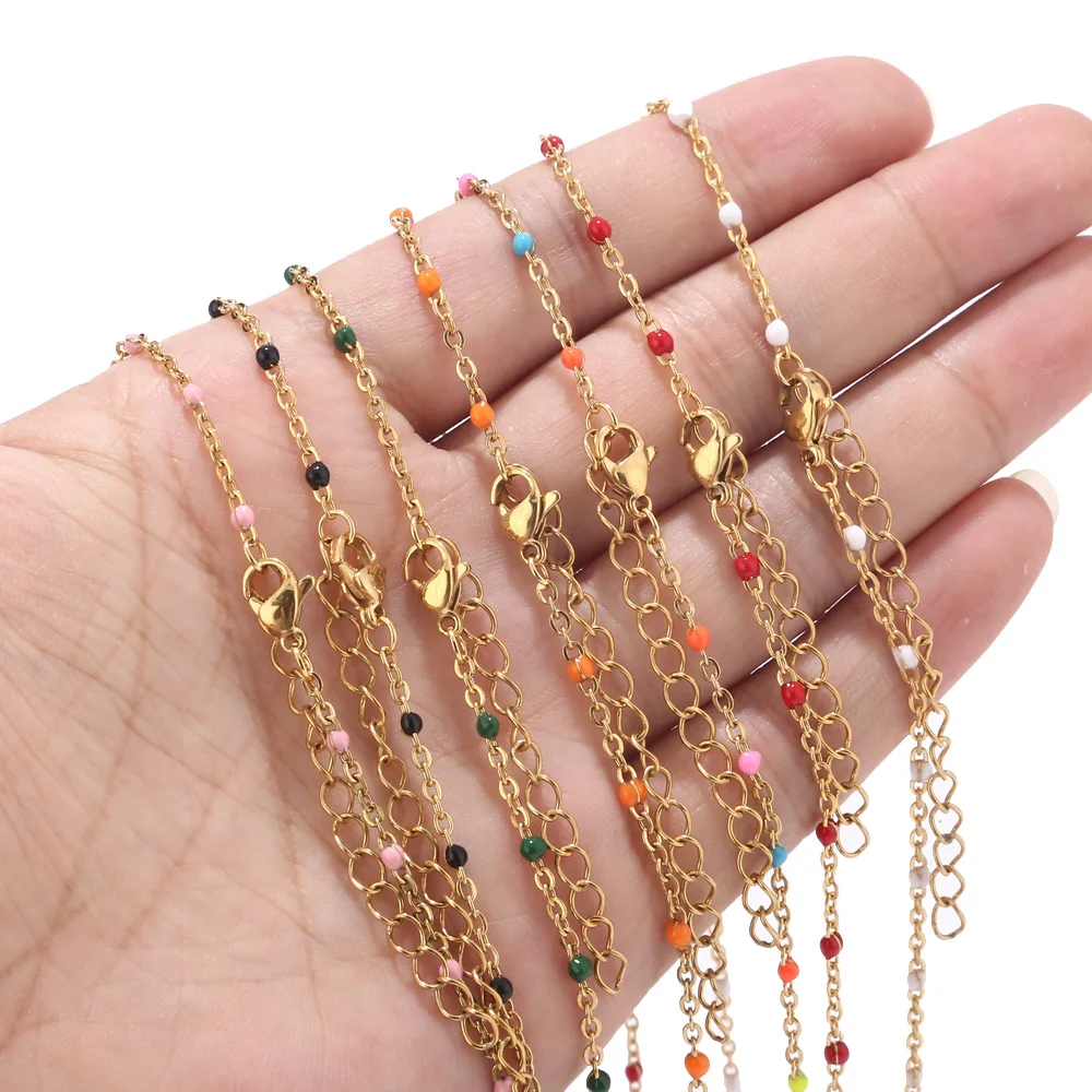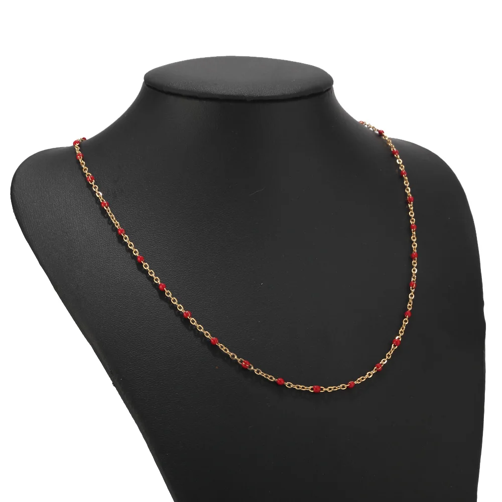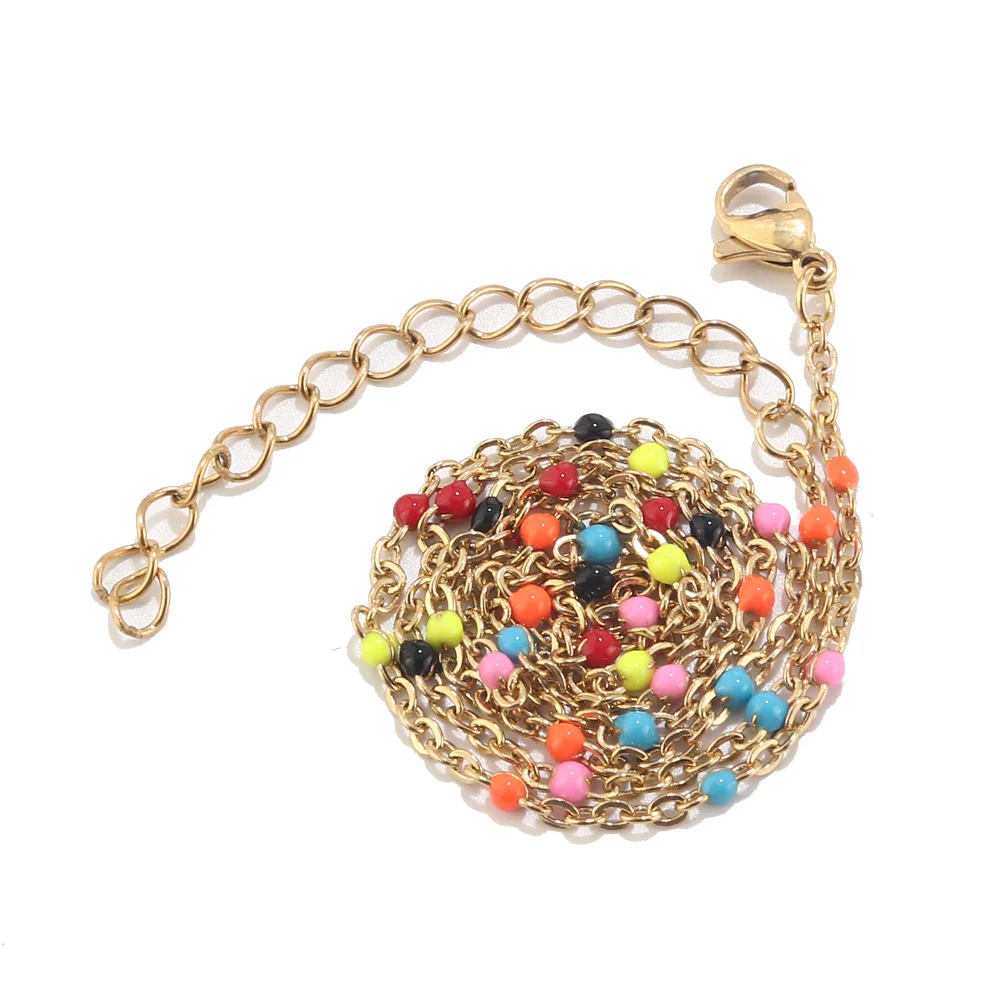 Buy 1pcs Stainless Steel Gold/Silver Choker Necklace Enamel Satellite Beaded Cable Ball Chain Choker Wo