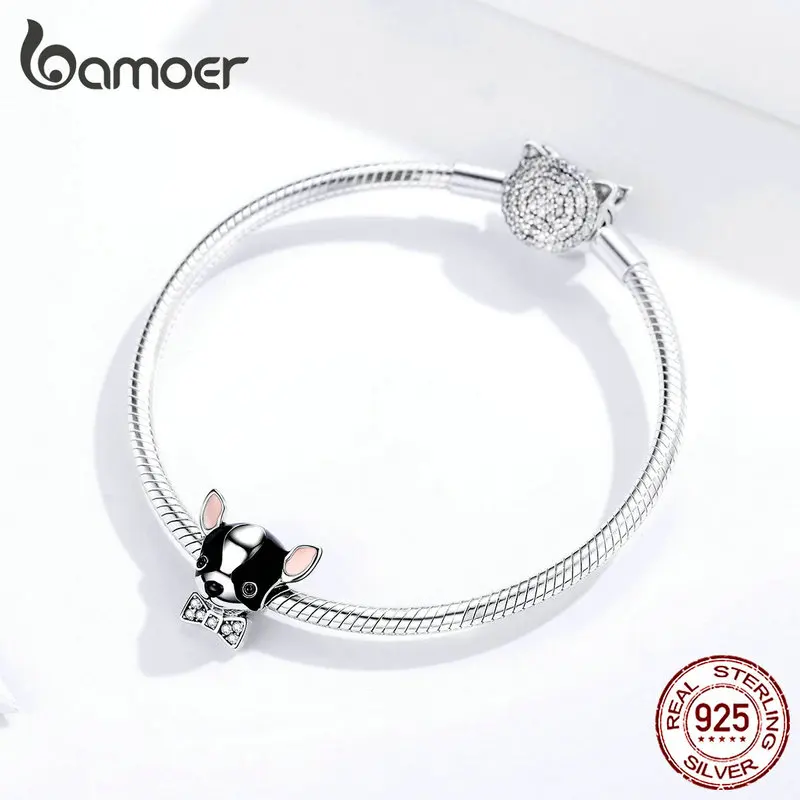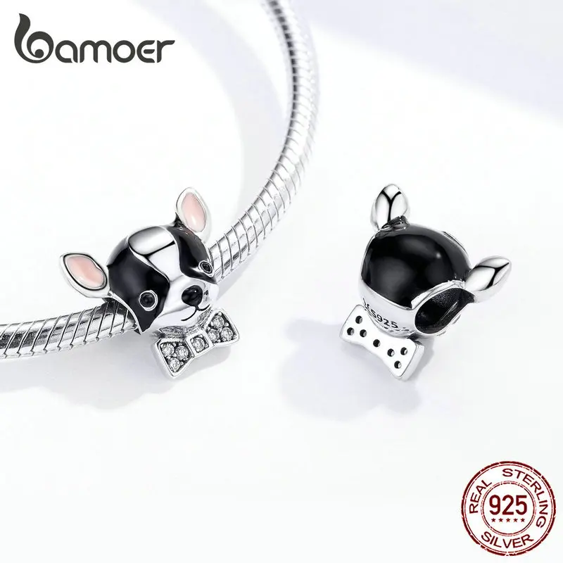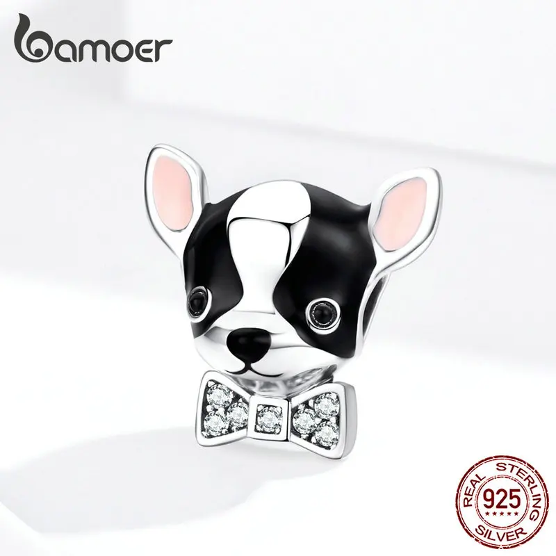 New bamoer Enamel Chihuahua Dog Charm Silver 925 Original Fit Bracelet & Bangle 925 Sterling Silver Jew