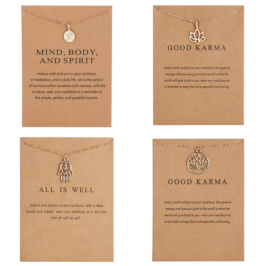 Promo Fashion Jewelry Good Karma Happy Lotus Choker Necklace Alli is Well Heart Love Palm Family Pendant