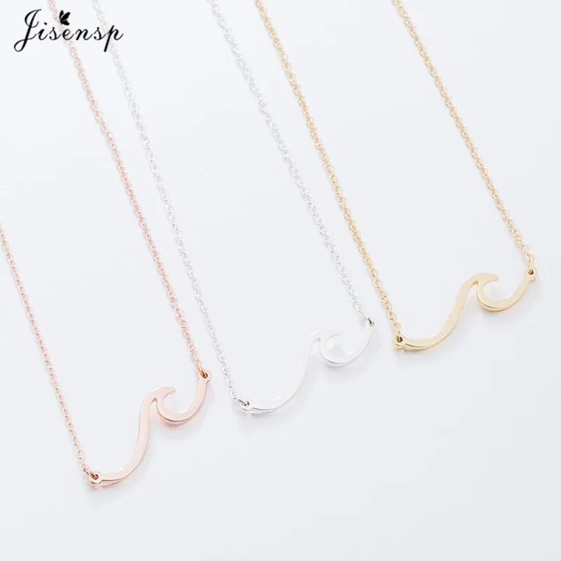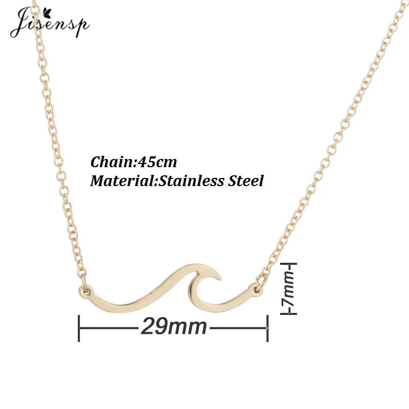 New Jisensp Stainless Steel Wave Necklace Pendant Beach Surfer Jewelry for Women Ocean Wave Charm Choke