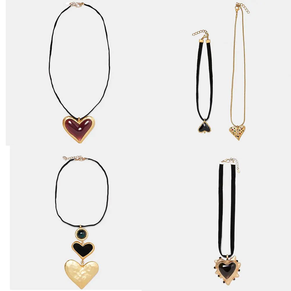 Promo JUST FEEL ZA Crystal Heart Pendant Necklaces For Women Statement Vintage Choker Necklace Jewelry Bo