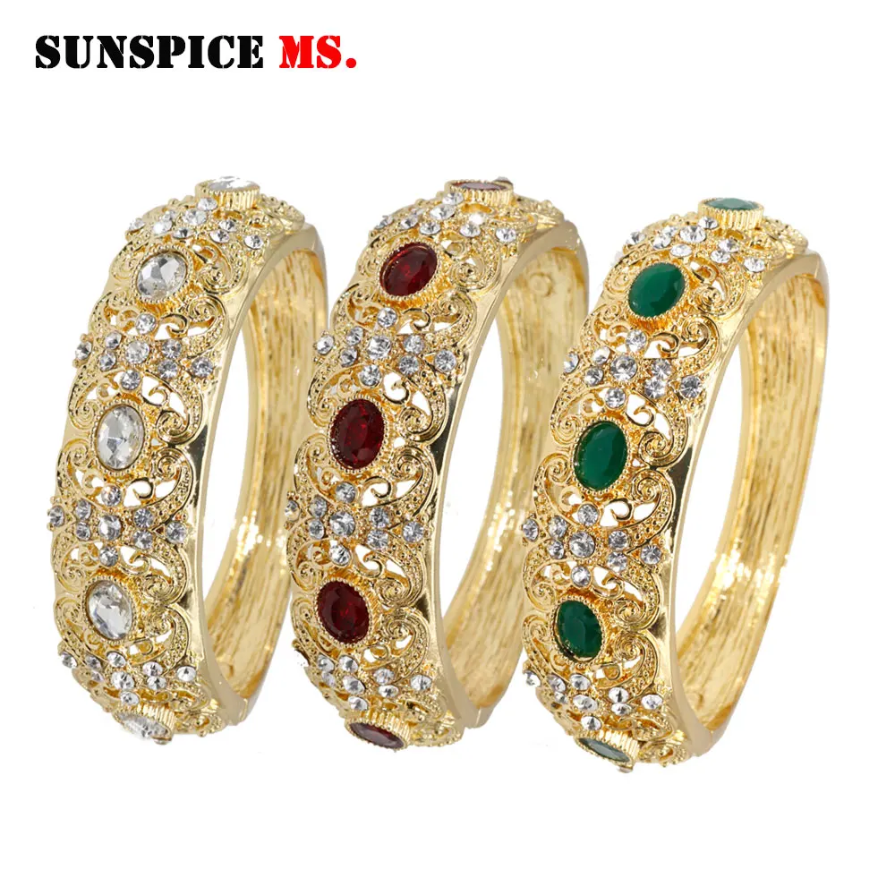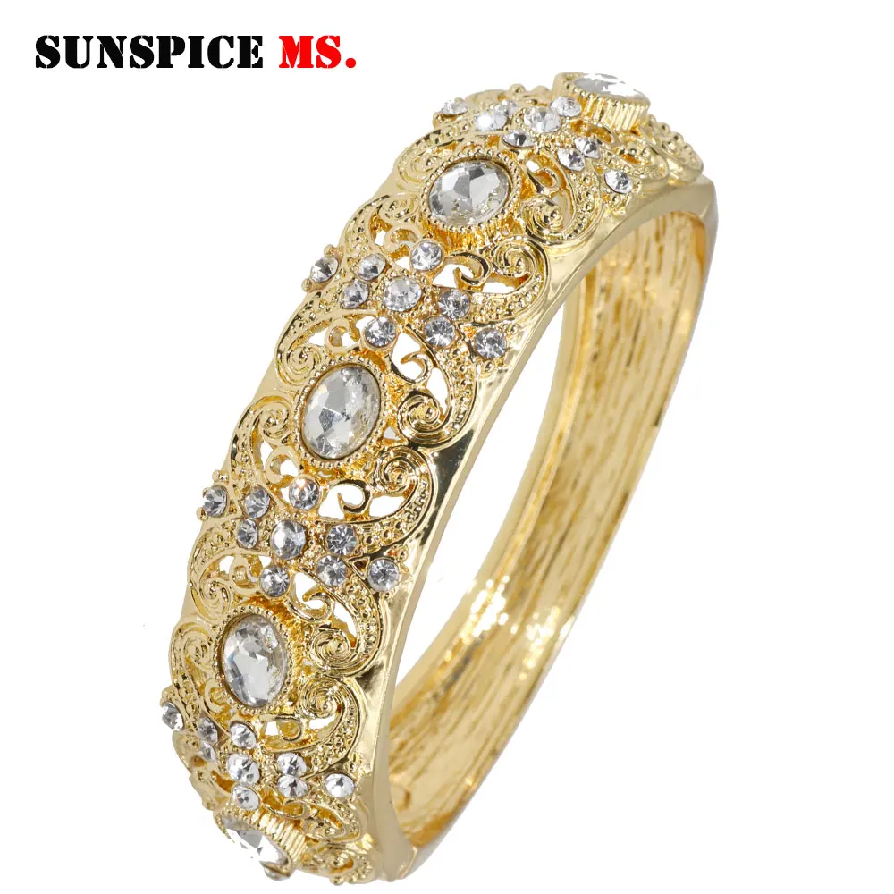 Buy SUNSPICE-MS gold color Morocco rhinestone bangles for women ethnic resin open cuff bracelet Dubai w
