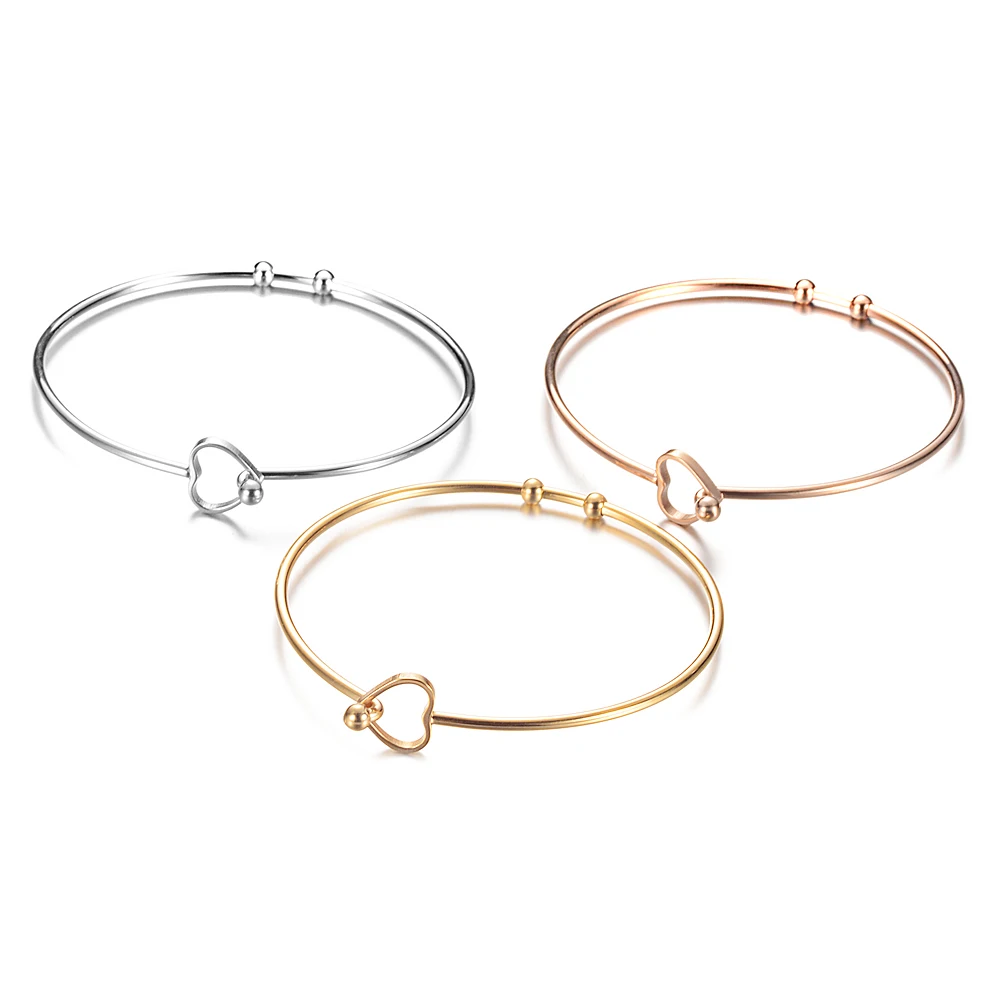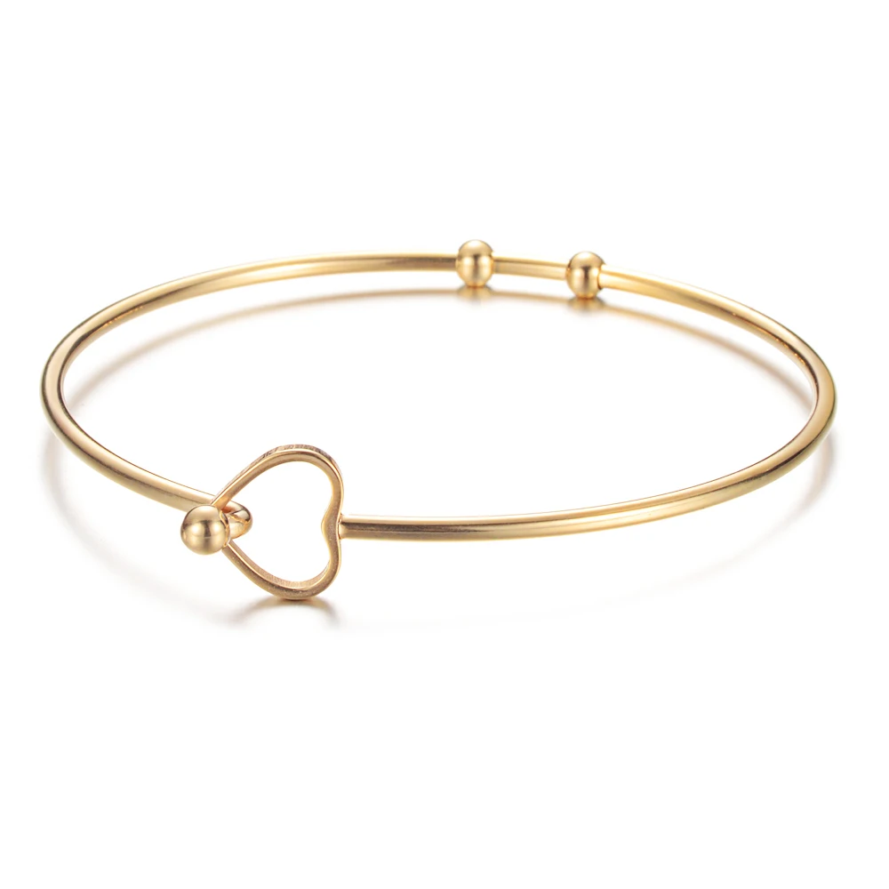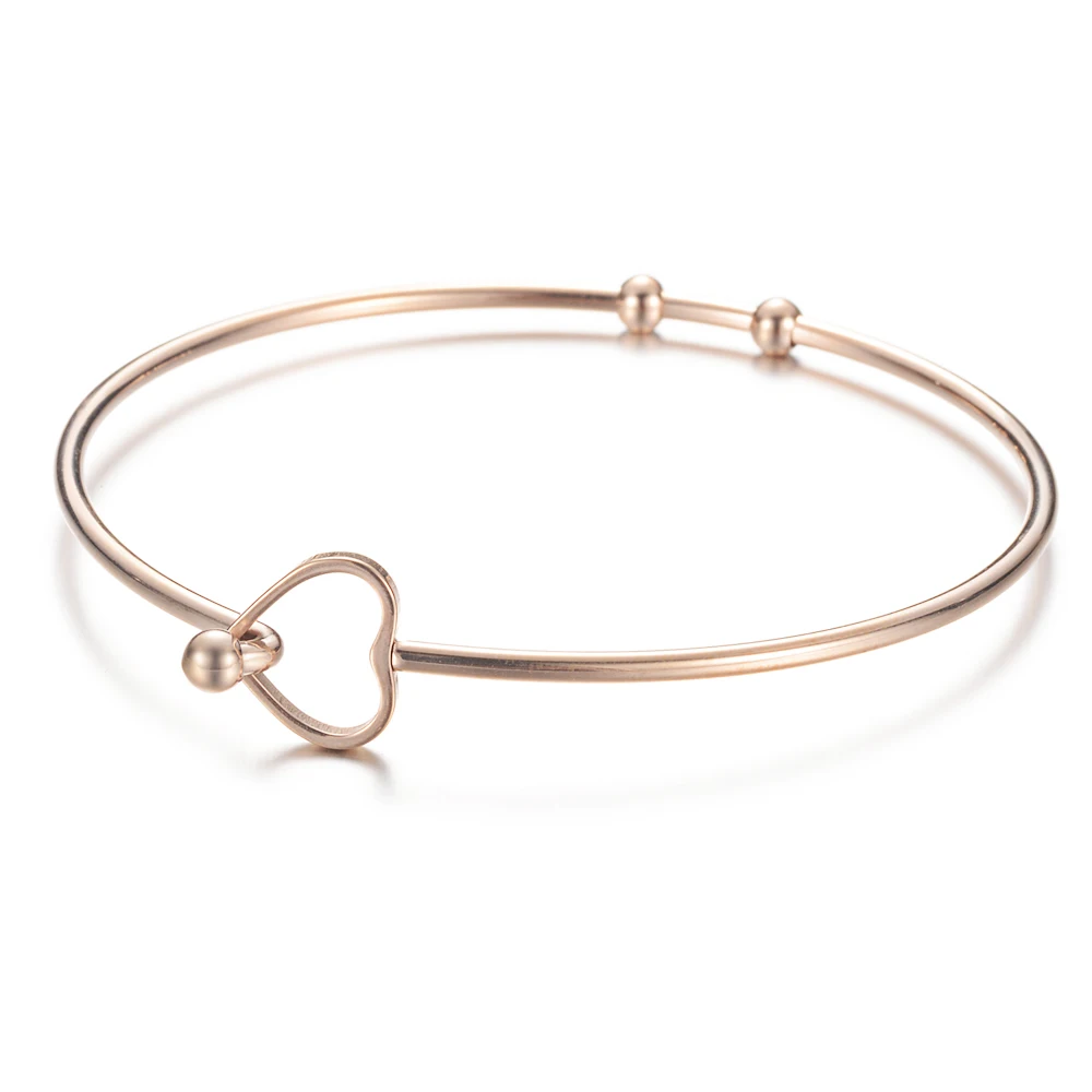 New 60mm Newest 2mm Thick Stainless Steel Hearts Beads Bangle Bracelet Cuff Expandable Opening Bangle 3