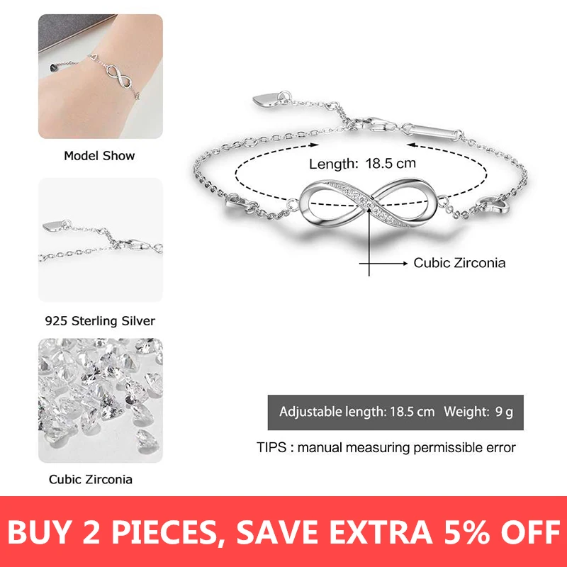 New 925 Sterling Silver Infinity Bracelets for Women Adjustable Friendship Bracelets & Bangles Wedding