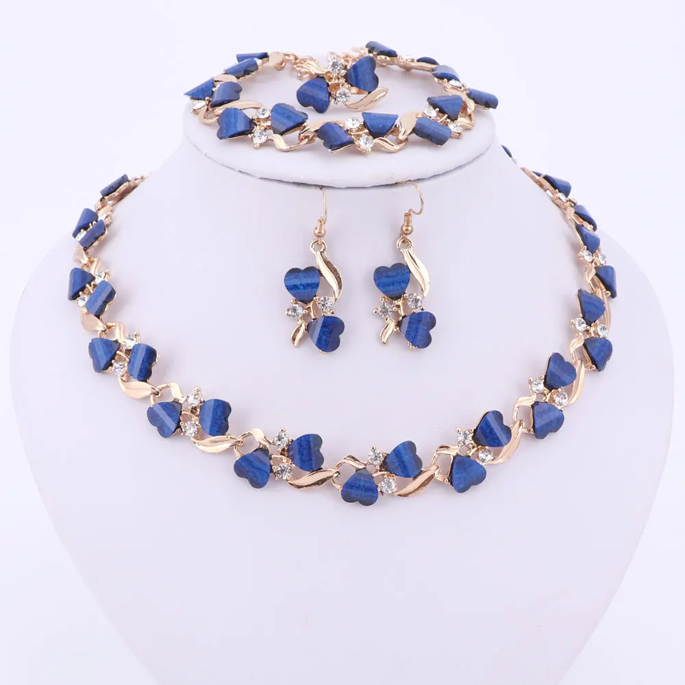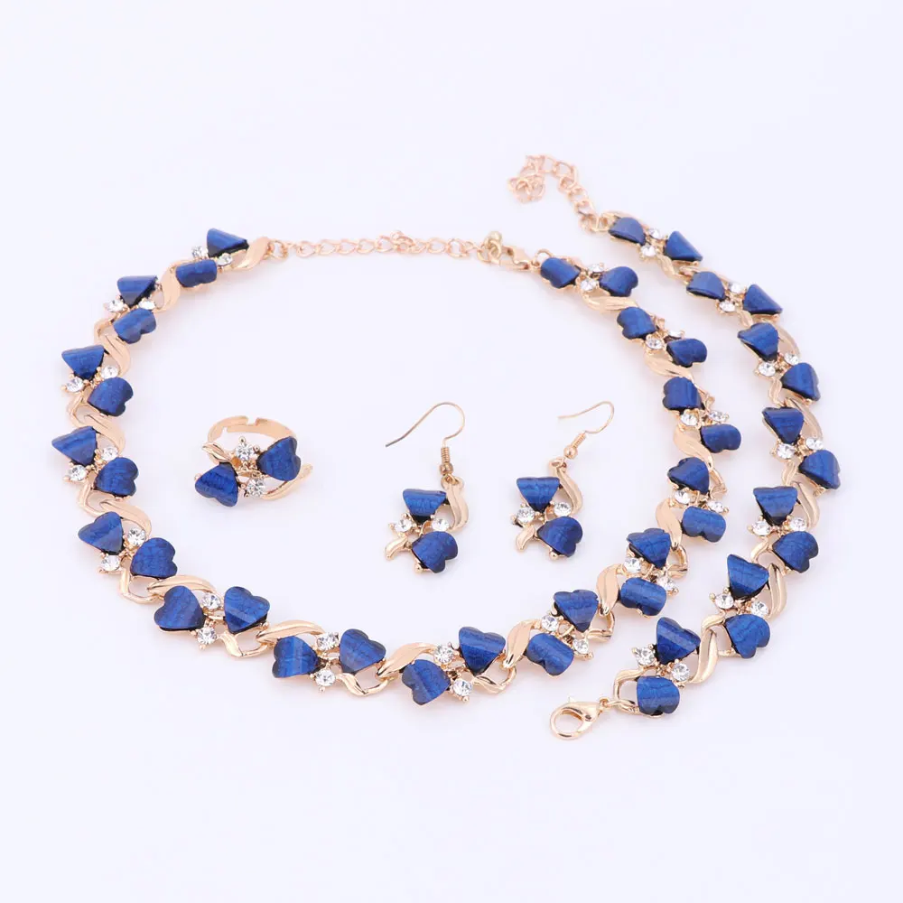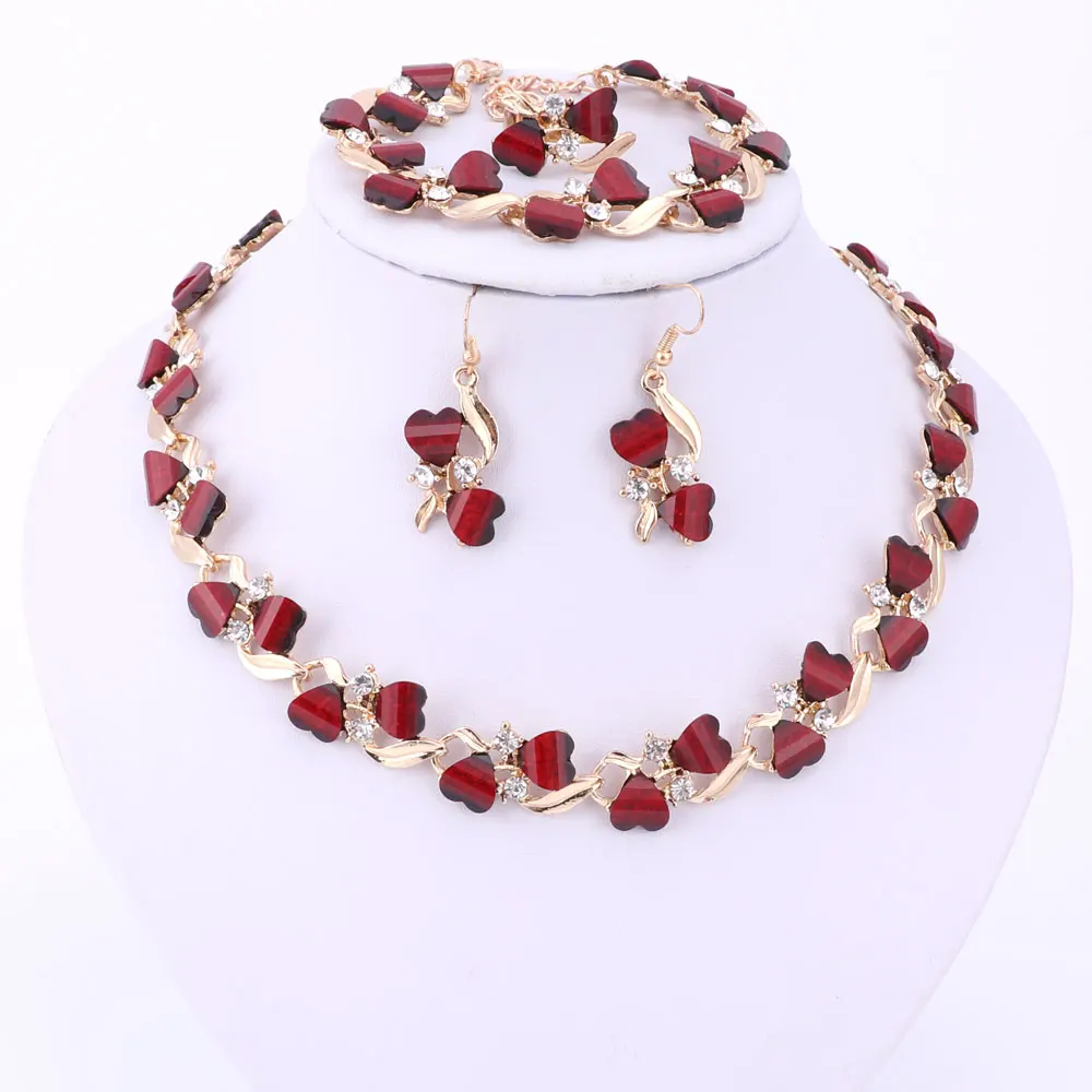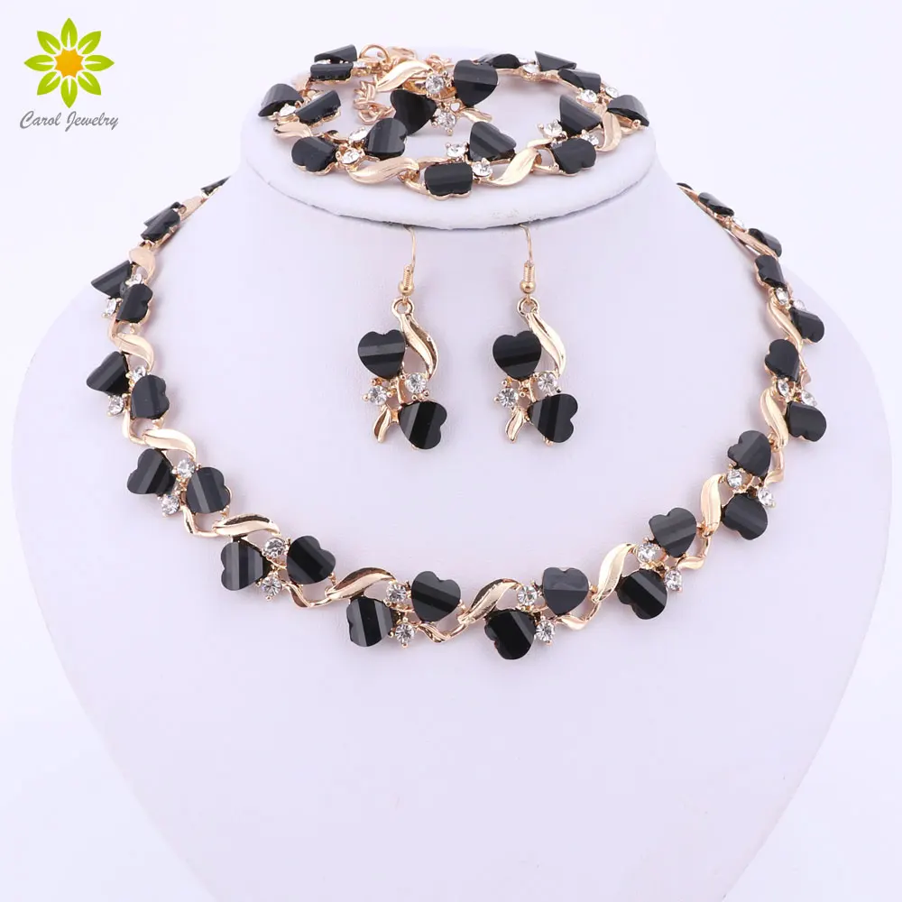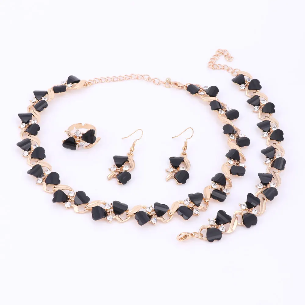 New Women Party Bridal Fine Crystal African Beads Jewelry Sets Heart Shape Resin Necklace Ring Bracelet