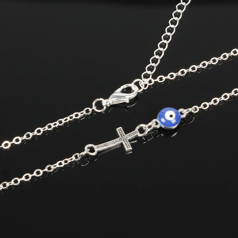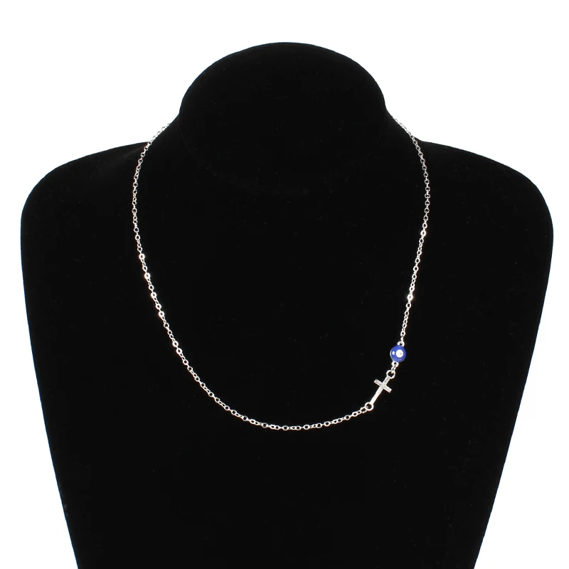 New Zuowen Fashion Women Jewlry Small Cross Choker Necklace Blue Evil Eye Statement Necklace Halloween