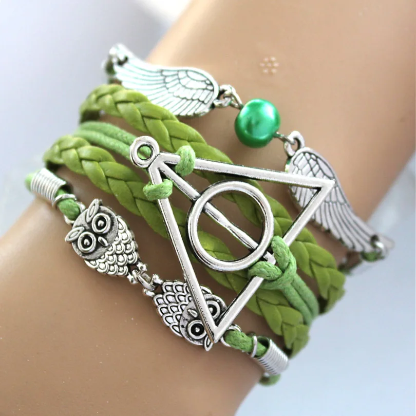 Promo THE Deathly Hallows Wing Dream infinity Bracelet link Bracelets Charms Bracelet Hogwarts Slytherin