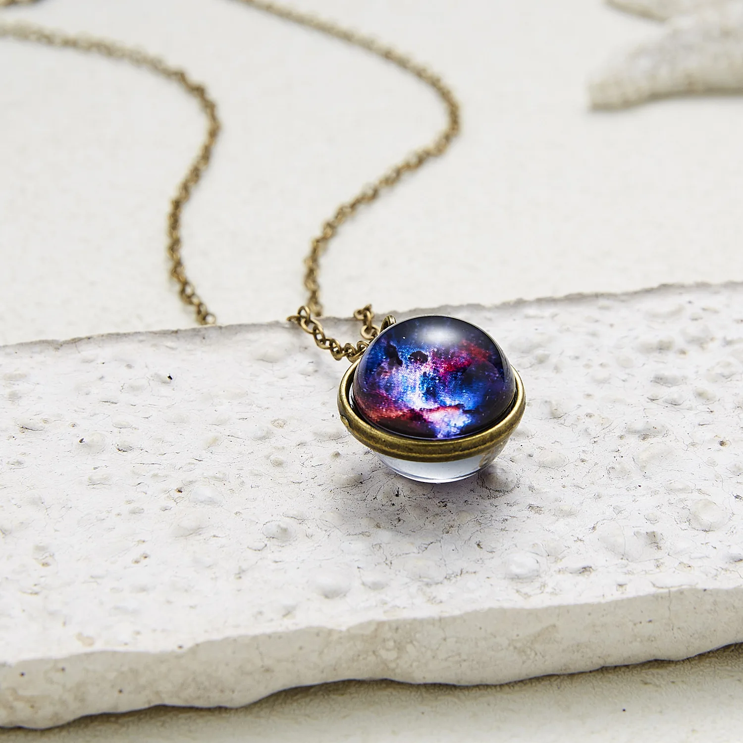 Promo Fashion Galaxy Nebula Universe Night Light Pendant Necklace for Woemn Men Creative Retro Long Sweat