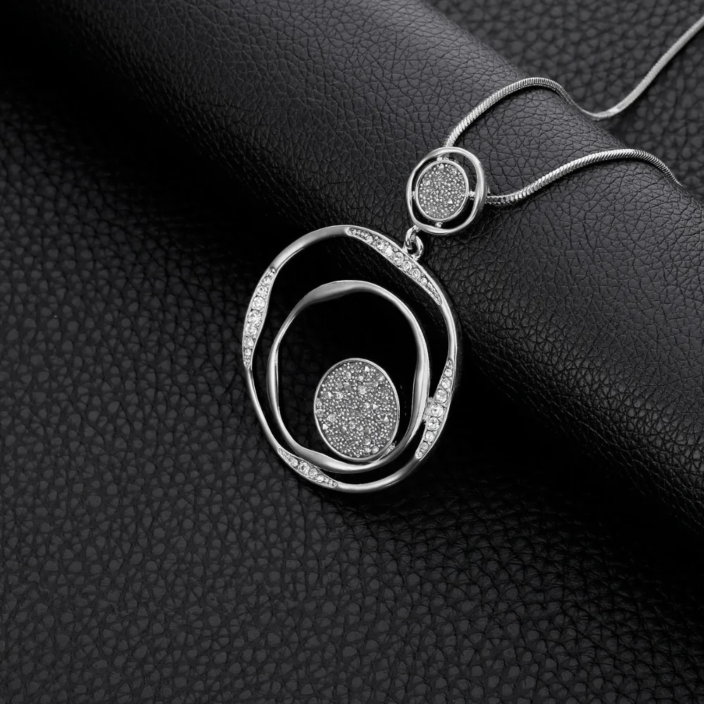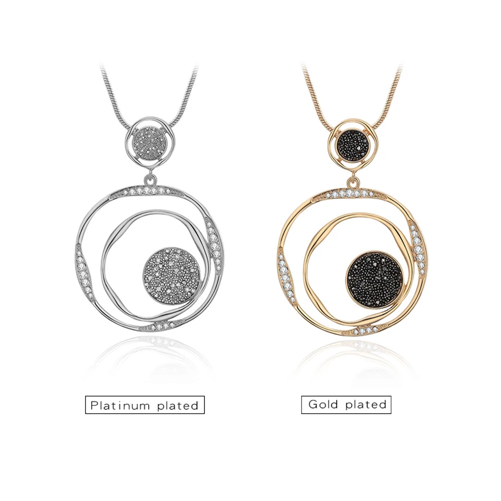 Promo Gold Round Black Crystal Pendant Necklaces for Women Statement Long Necklace Fashion Jewelry Gift c