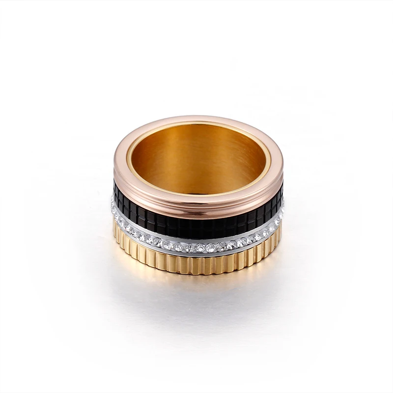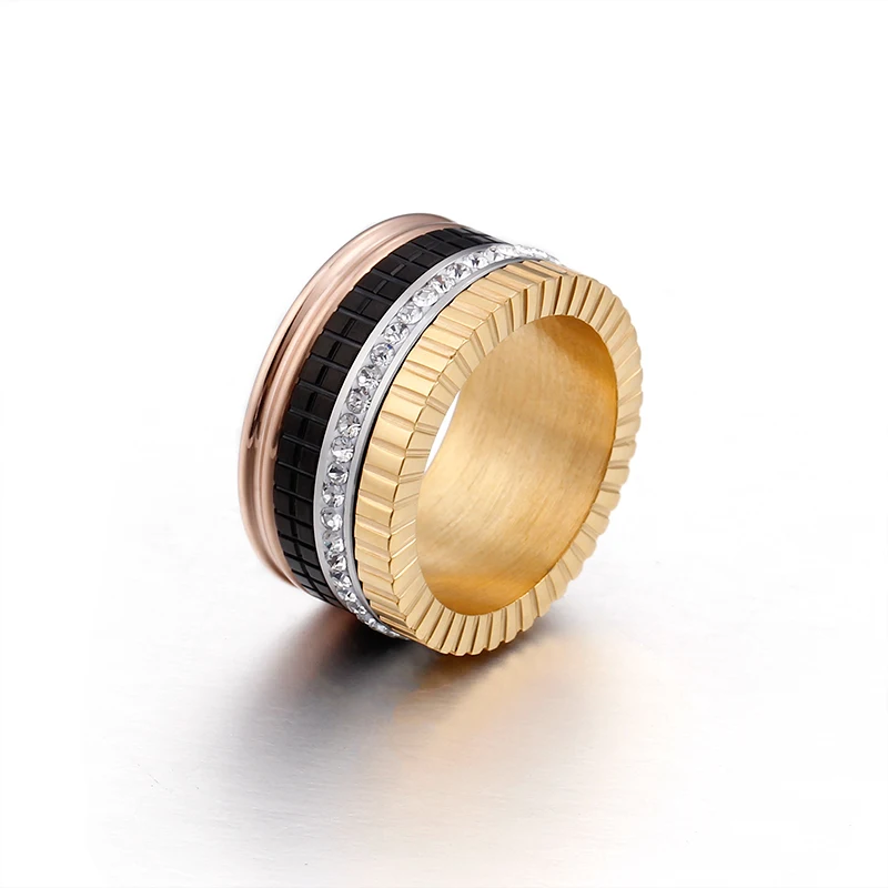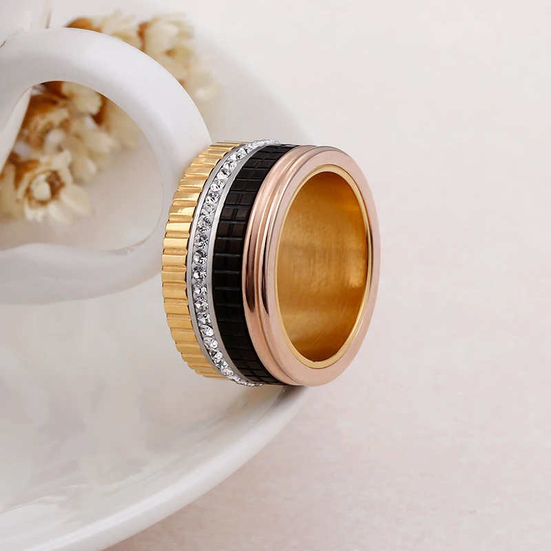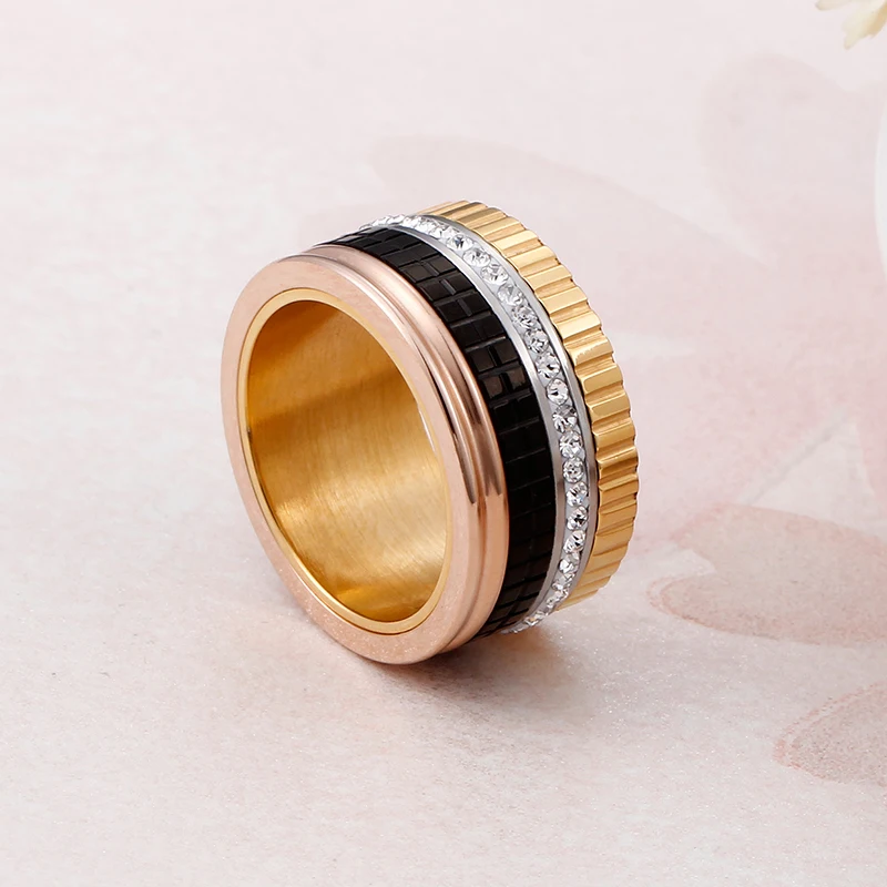 Best Luxury Stainless Steel Rotatable DoubleRings Finger Rose Gold Accesorios White Black Zircon Party F