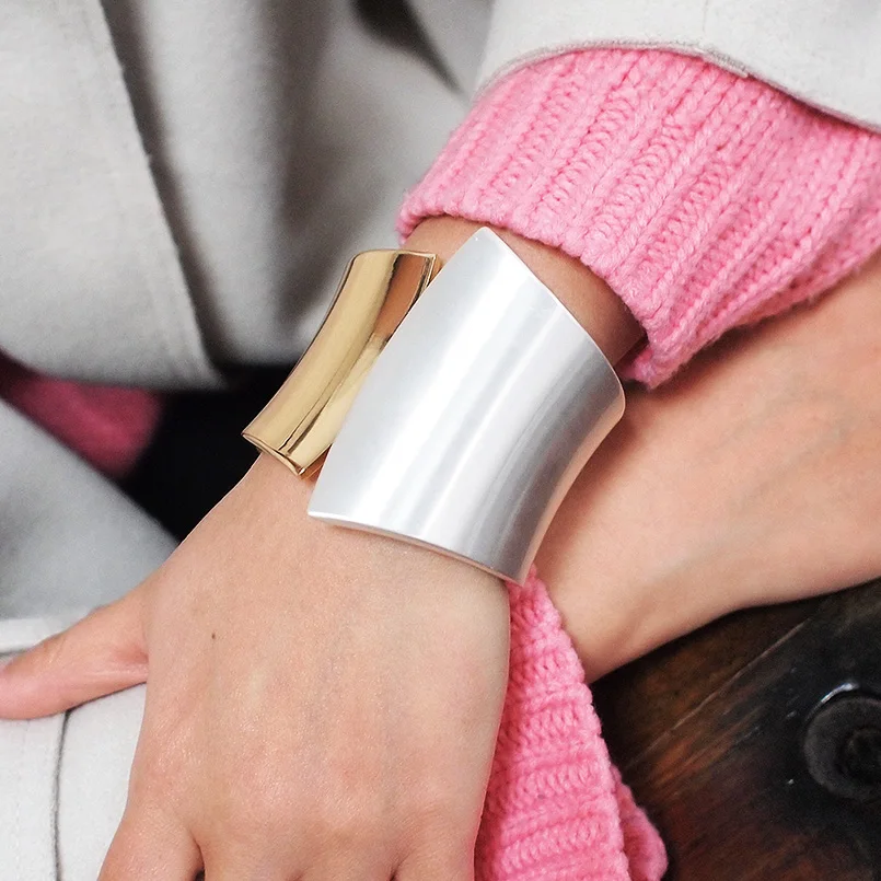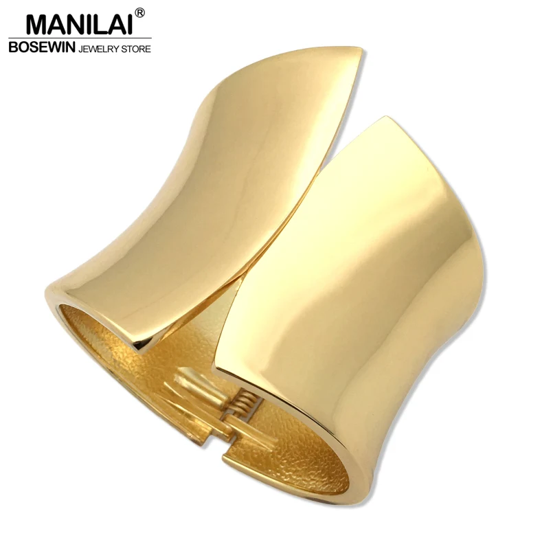 Buy MANILAI Classic Punk Shiny Surface Alloy Statement Cuff Bangles Bracelets For Women Fashion Jewelry