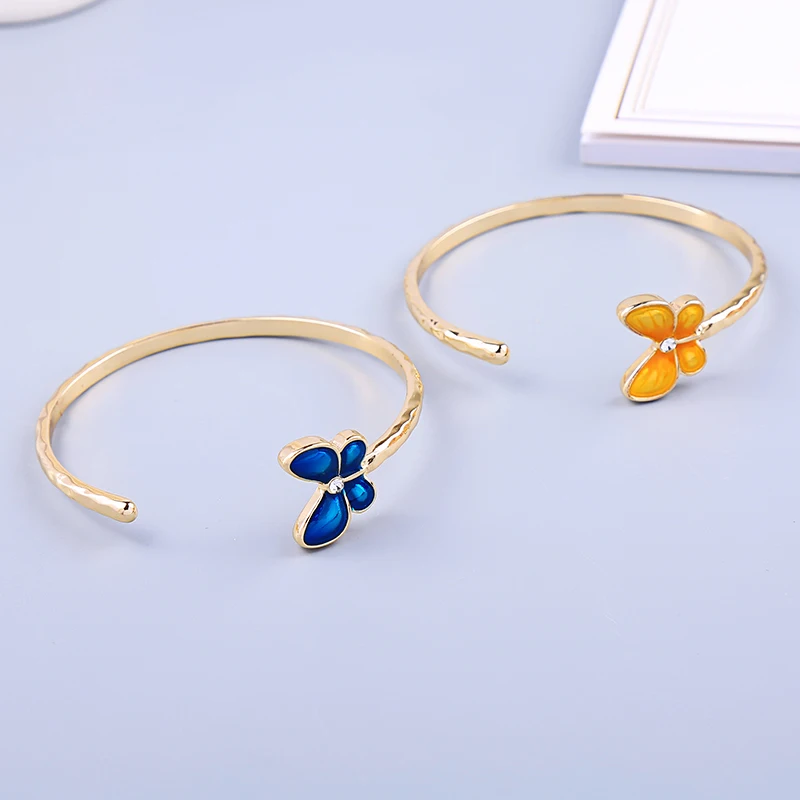 New Simple Design Bangle For Women Fashion Blue/Yellow Enamel Butterfly Bangle