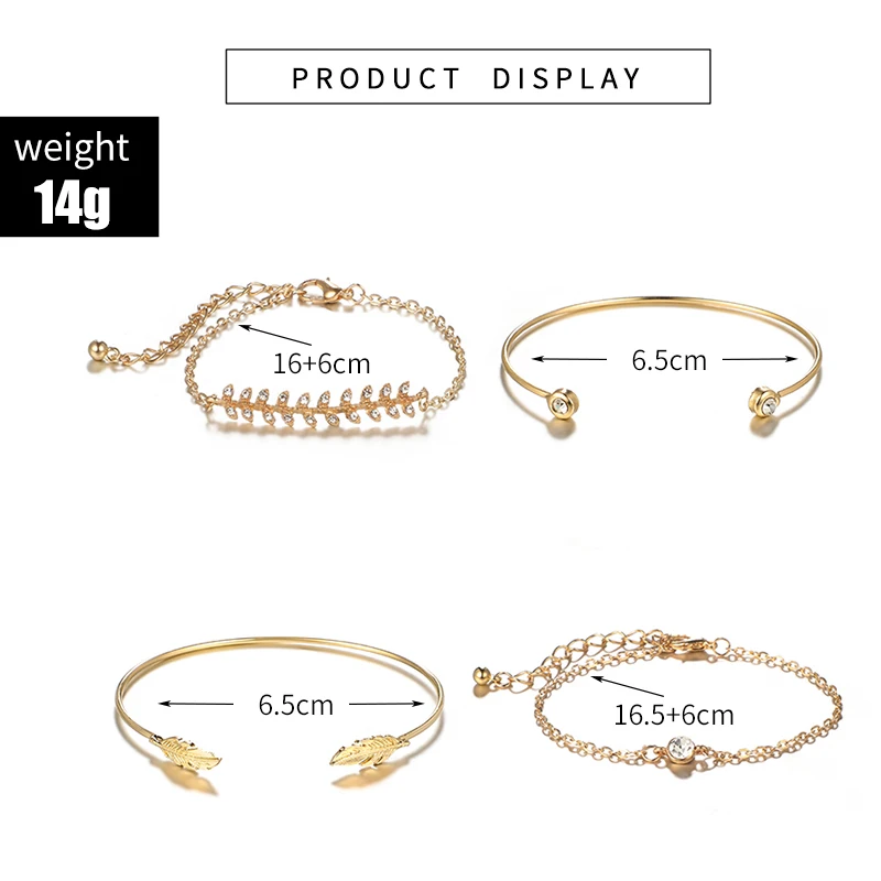 If you search this product, i propose you to take this excelent and best products. I hope Tocona 4pcs/Set Bohemian Circle leaf Rhinestone Charm Bracelets Set for Women Opening Gold Chain Br suitable for your needs.
