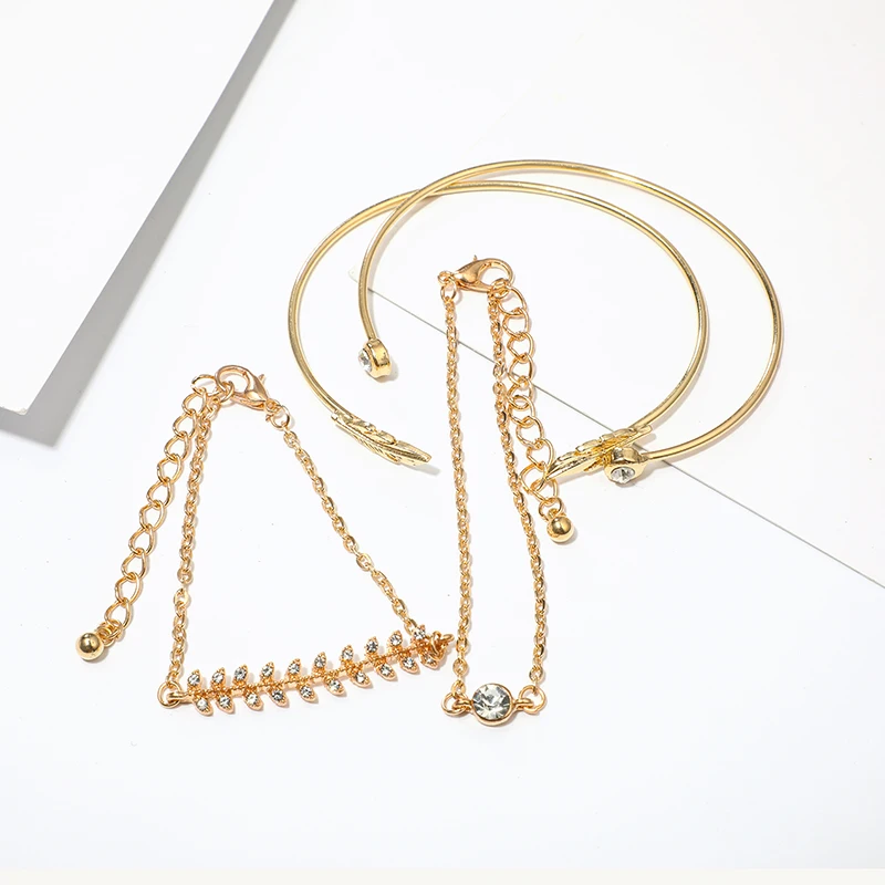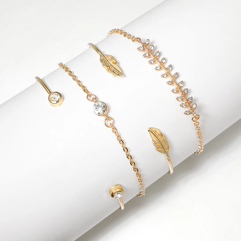 Promo Tocona 4pcs/Set Bohemian Circle leaf Rhinestone Charm Bracelets Set for Women Opening Gold Chain Br